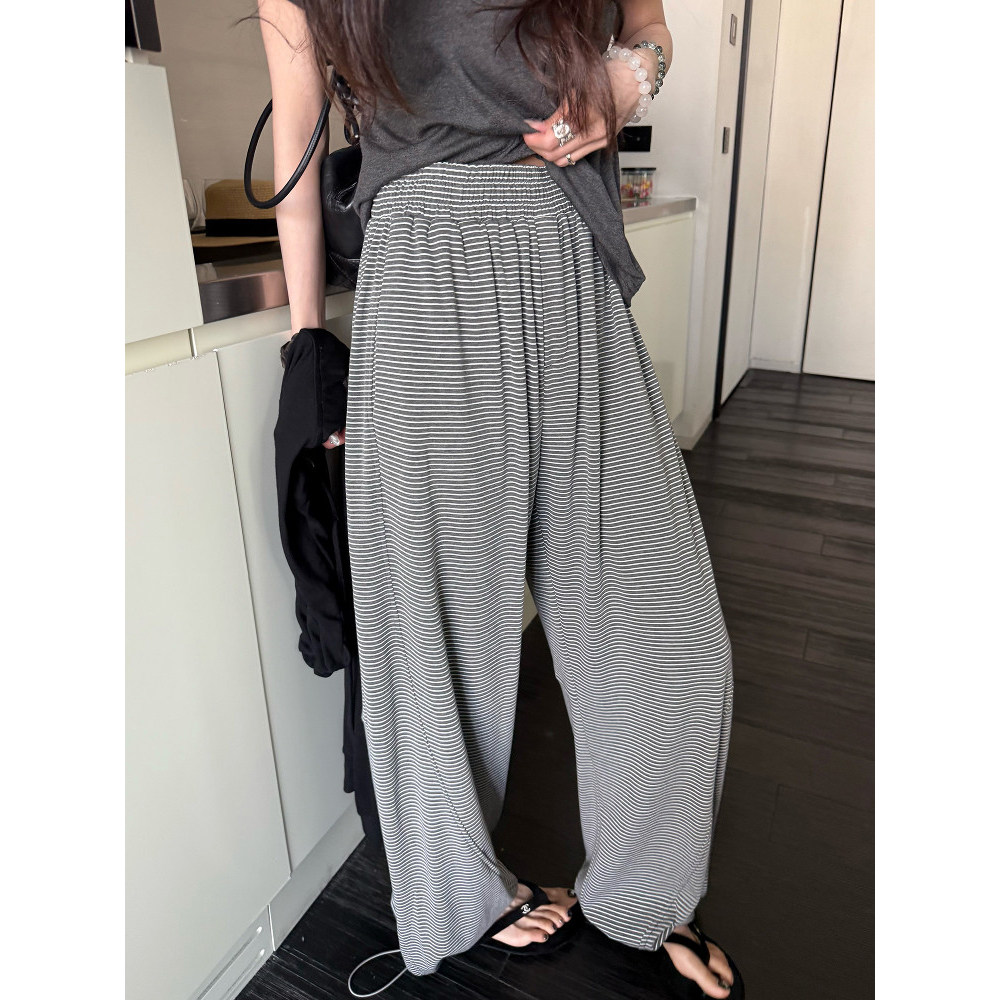 女夏裤 LIL 子 休闲裤 脚抽绳显瘦长裤 CHER 立体分割解构&条纹运动裤由