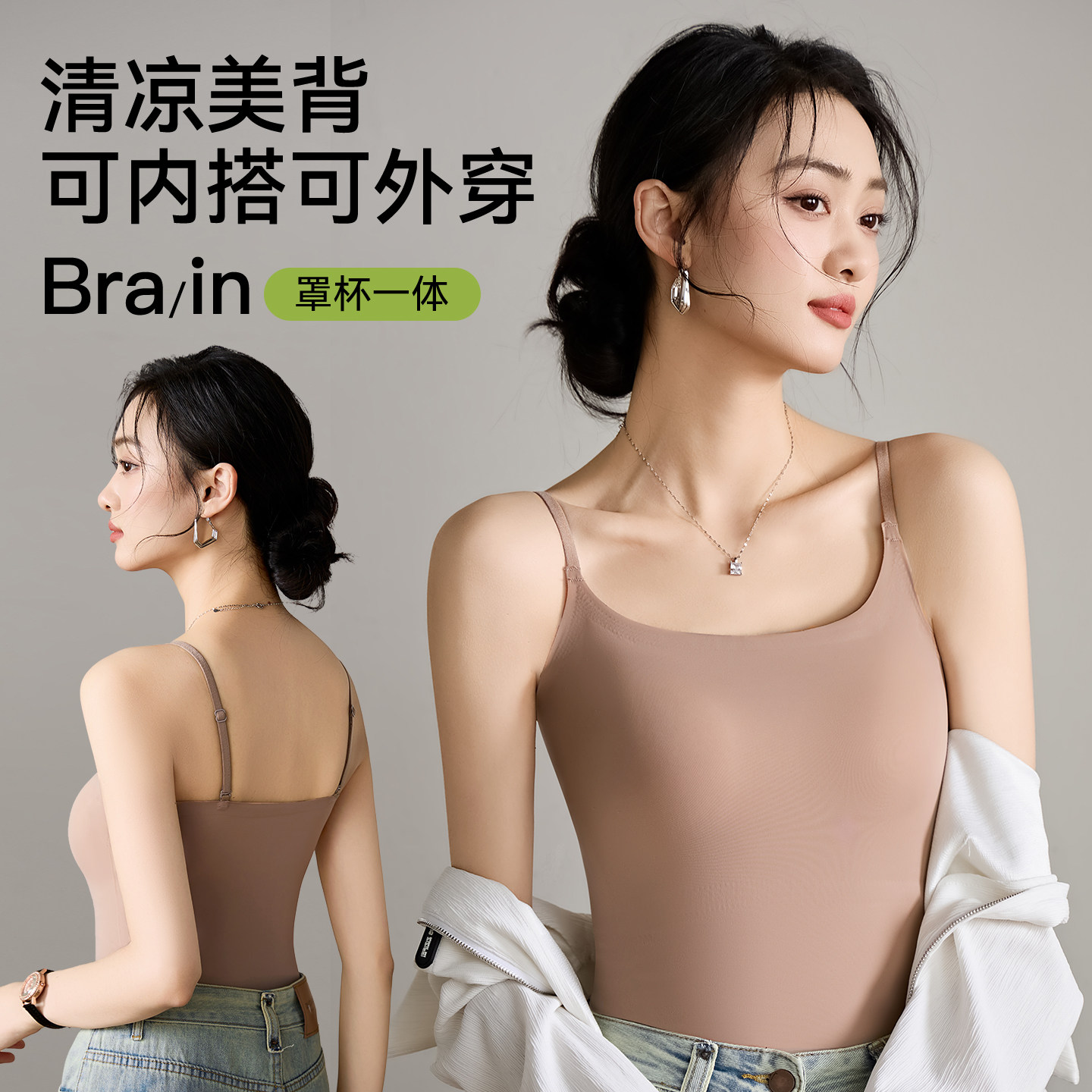 猫人美背内衣2026新款 粉底液带胸垫吊带背心女可外穿文胸一体 爆款由