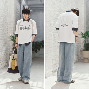 男宽松直筒cleanfit简约闪电纹长裤 复古水洗潮牌牛仔裤 AWRB美式