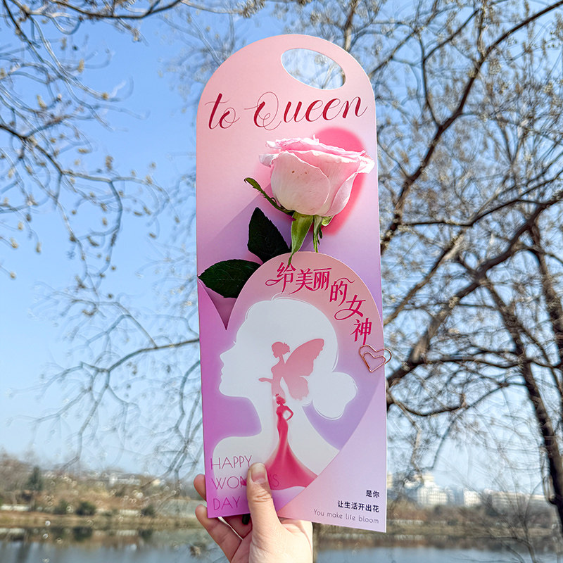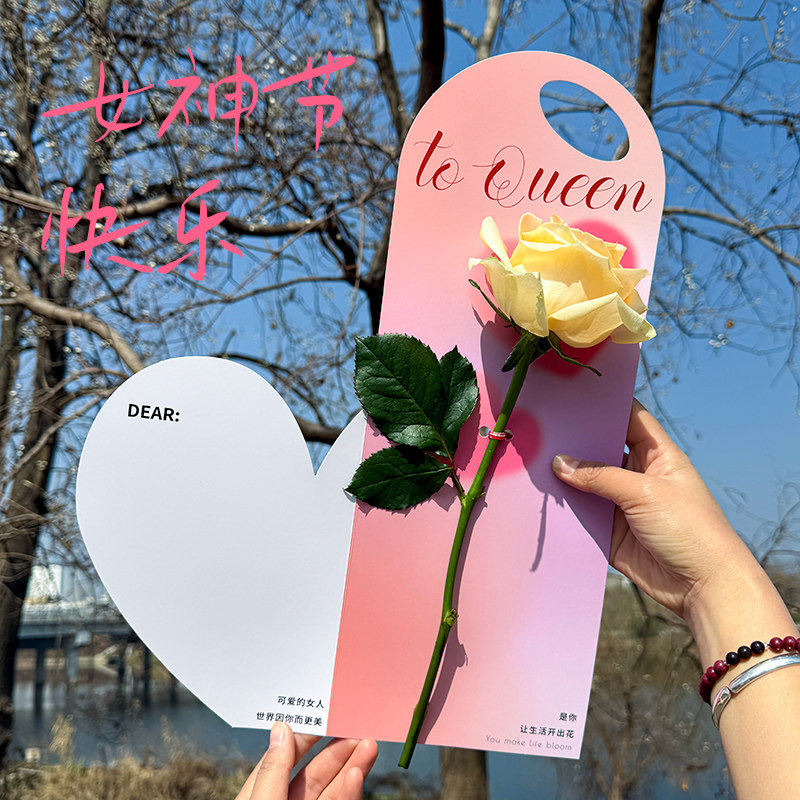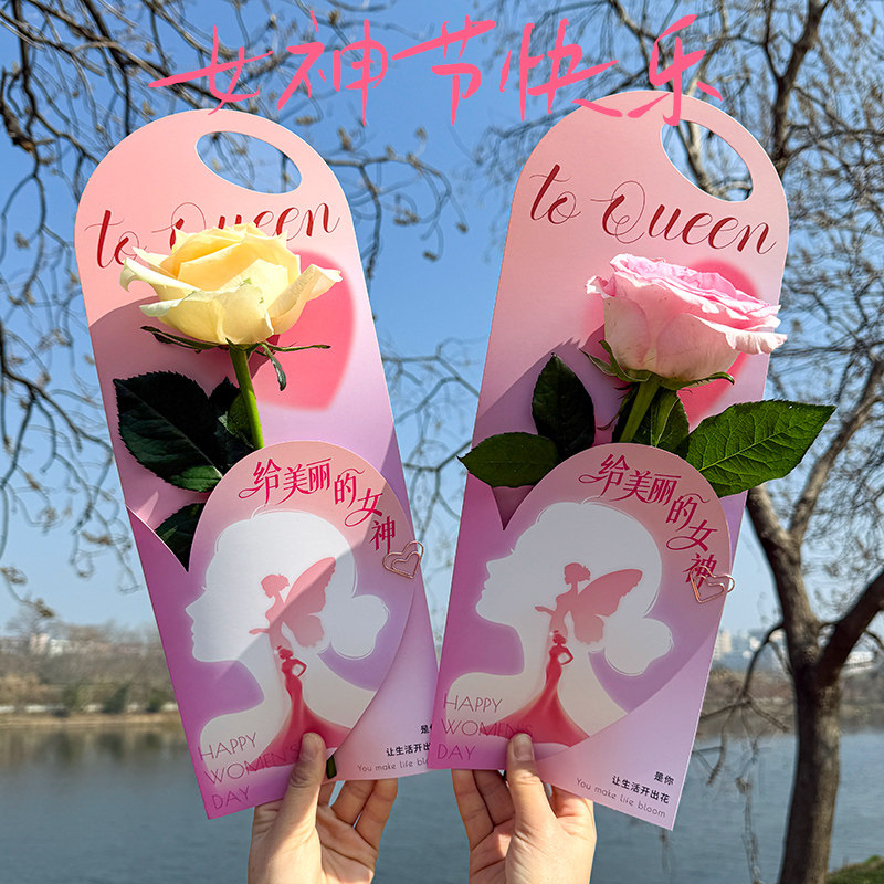 新款 38妇女节花束单支袋手提盒女神节鲜花袋商场门店活动礼品包装由