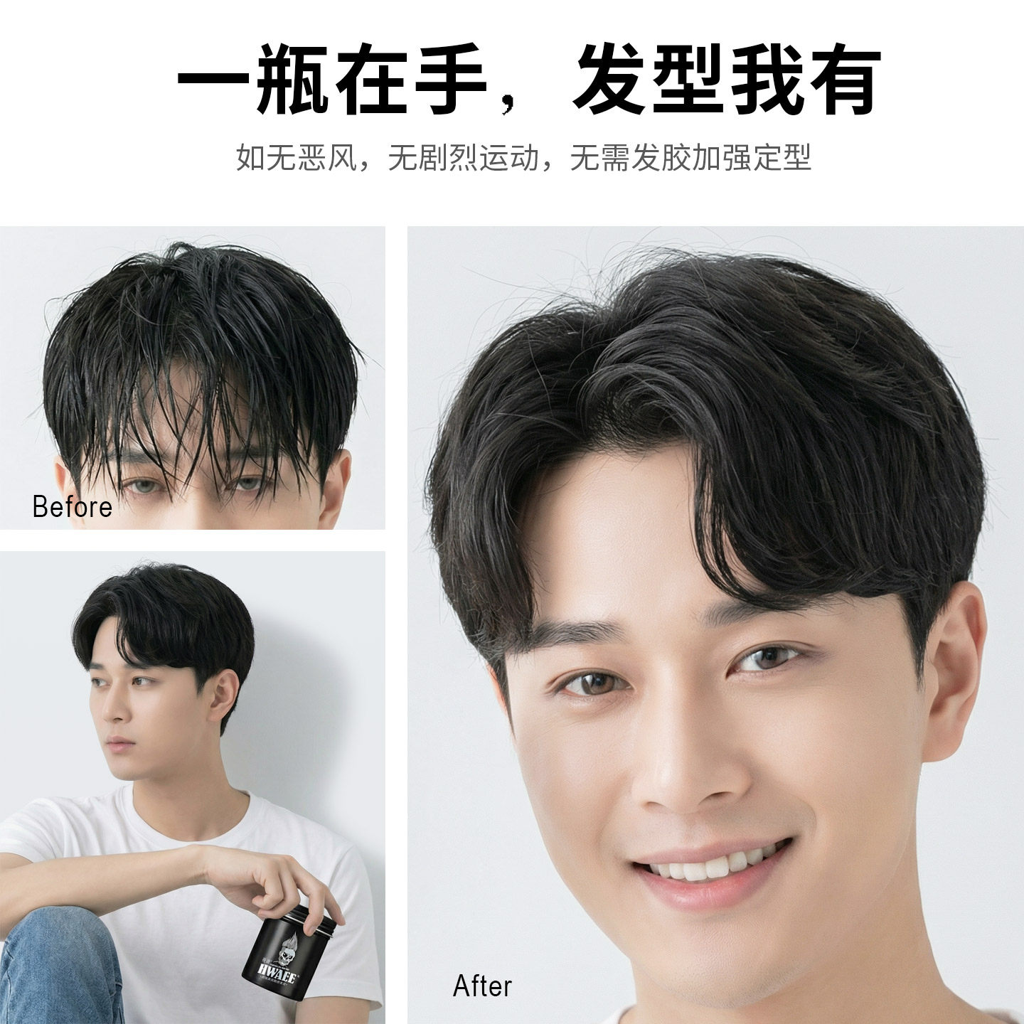 定型自然蓬松关二爷哑光发蜡发油清香发胶定型喷雾 关二哥发泥男士