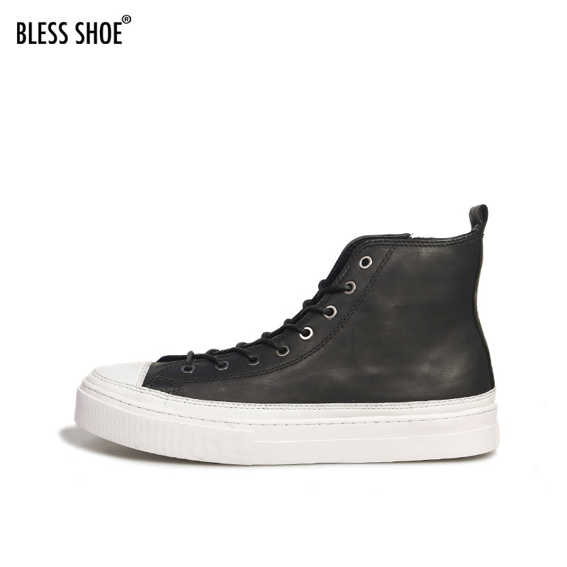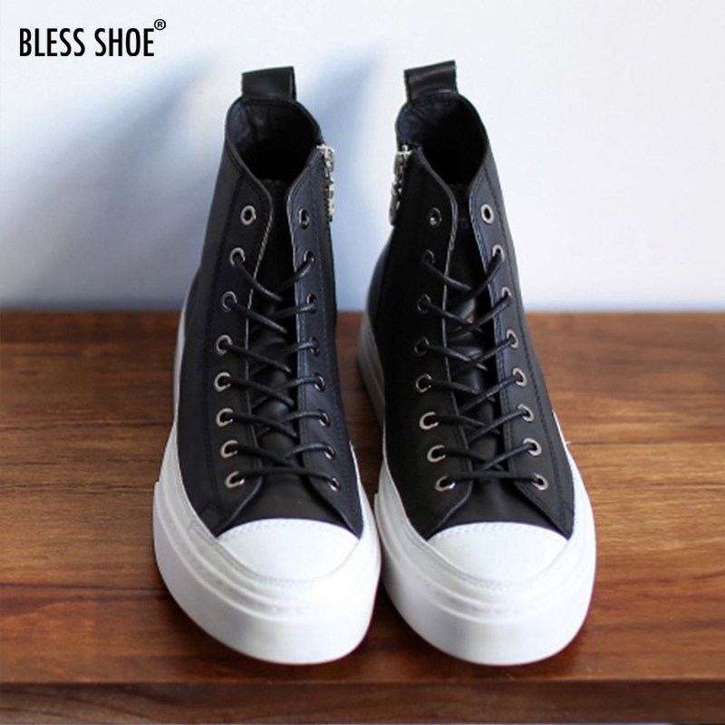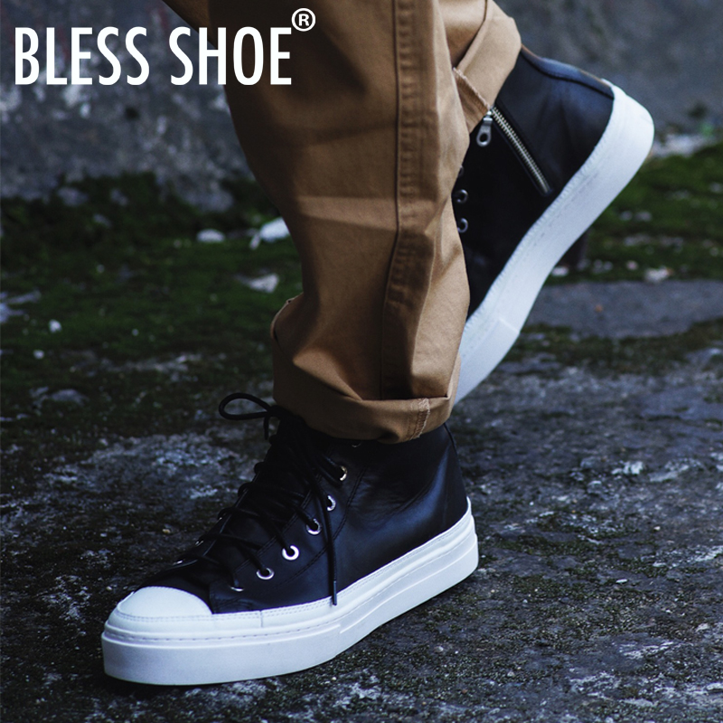 classic SHOE 黑色真皮高帮休闲板鞋 侧拉链男女鞋 zip BLESS由