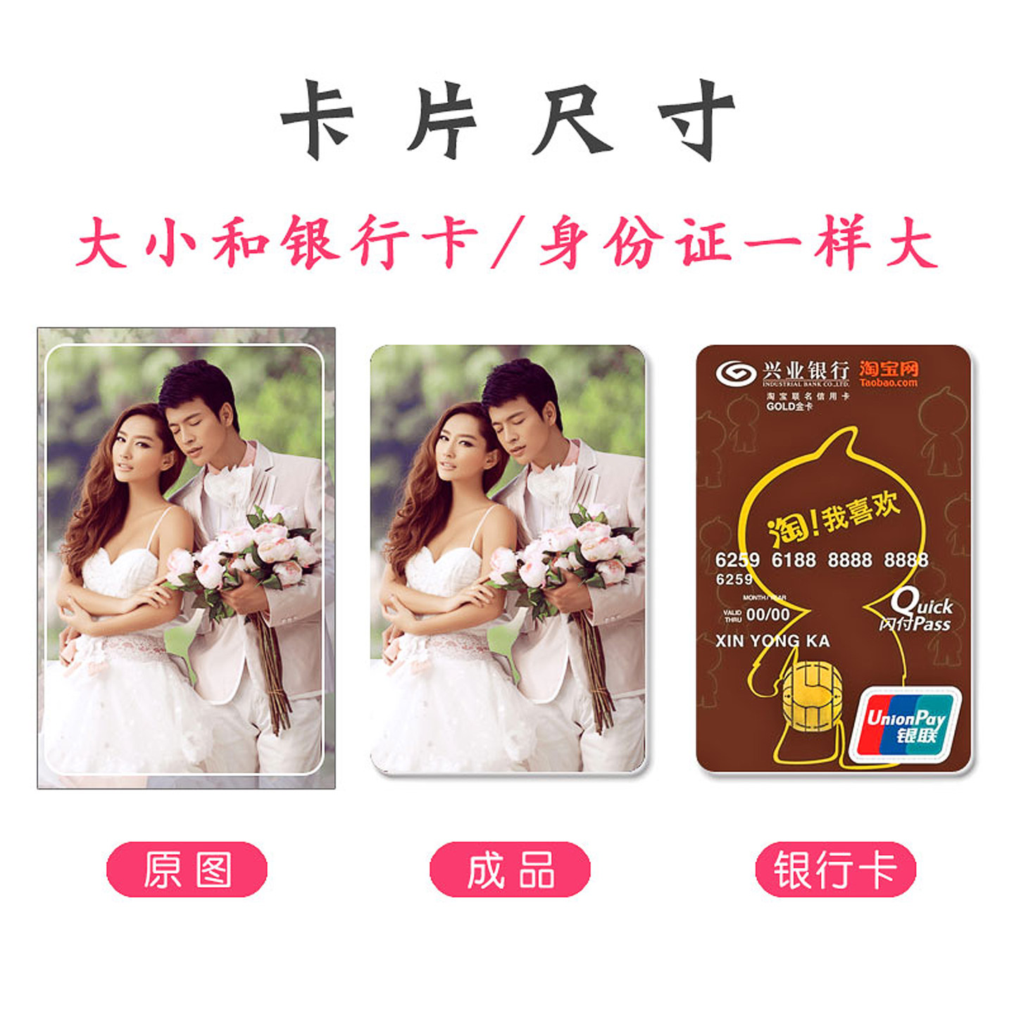 pvc双面钱包卡照片定制3寸情侣相片打印明星动漫卡来图冲洗放1张由