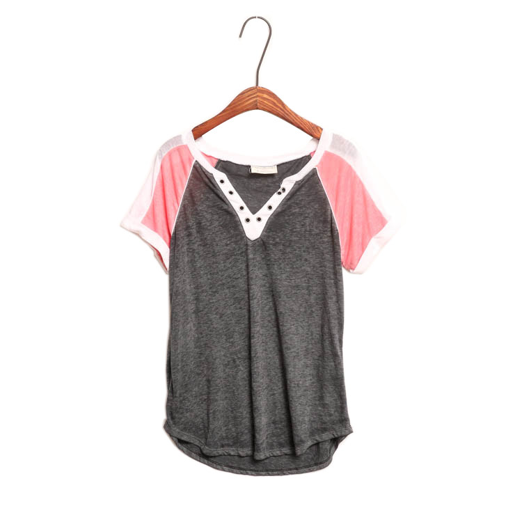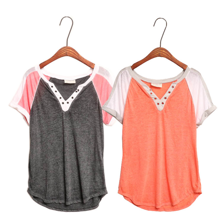 为您提供商品拼色V领短袖 欧美单夏季 女装 新款 胖MM上衣200斤 T恤休闲大码的详细介绍,