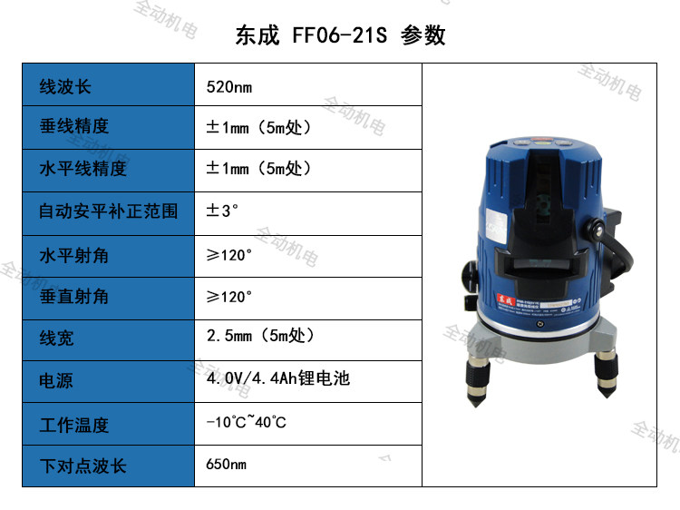 为您提供商品工程安装 东成 原厂标配 激光投线仪水平仪绿光三线 21S 测量 FF06的详细介绍,