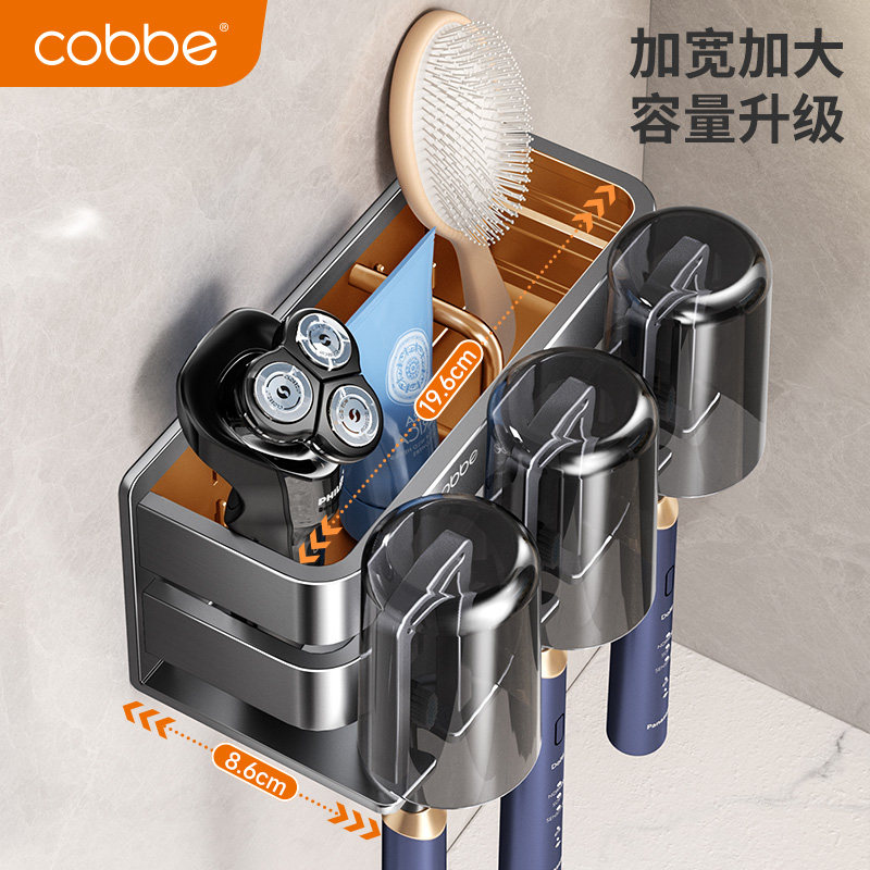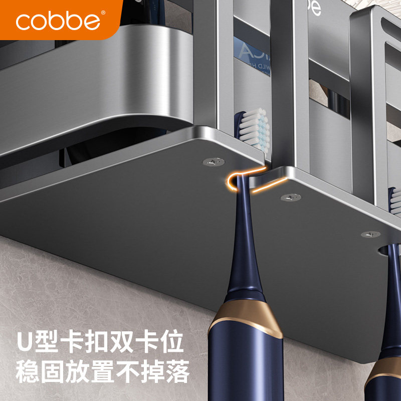 电动牙刷架子收纳漱口杯牙刷置物架免打孔卫生间刷牙杯 卡贝壁挂式