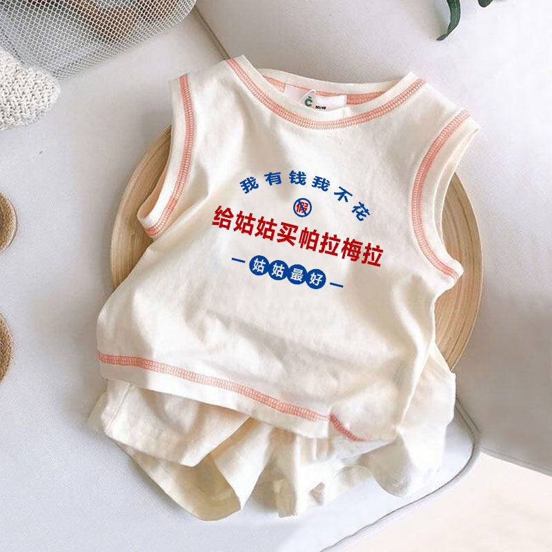 我爱姑姑 夏季 新款 男女宝宝洋气休闲运动两件套 儿童纯棉背心套装由