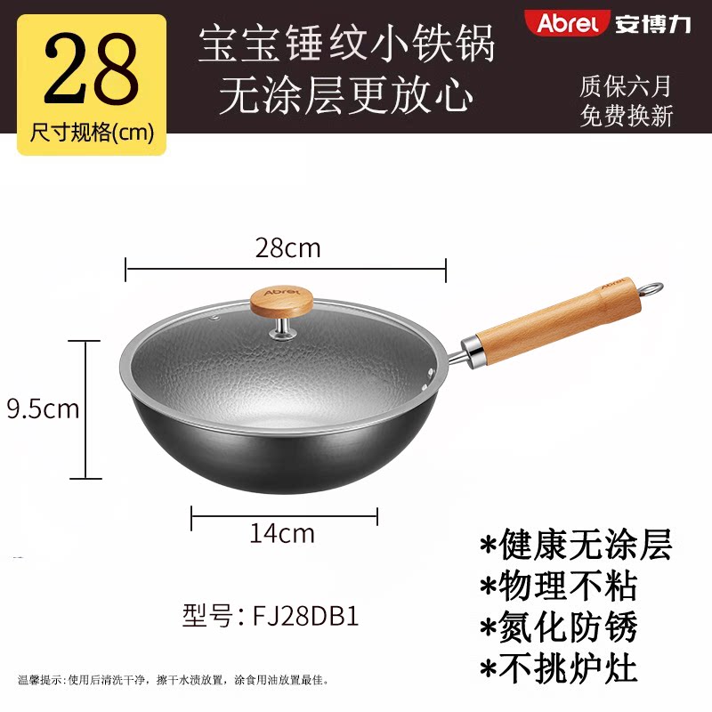 安博力迷你小铁锅家用无涂层炒锅宝宝儿童专用辅食锅平底锅泡面锅由