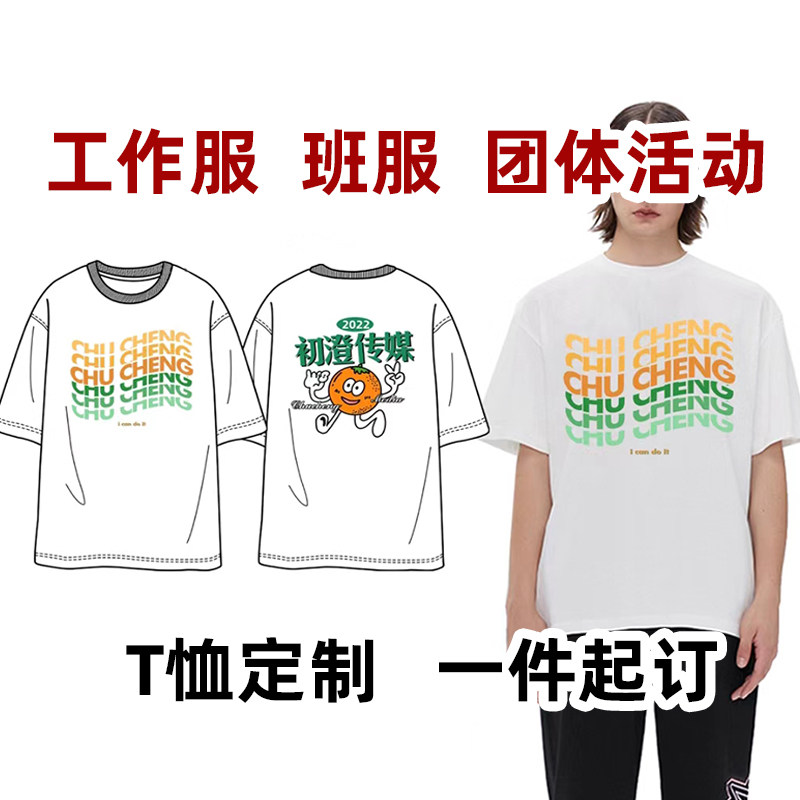 定制纯棉T恤文化衫 印图印字印logo矢量图设计更改印制班服 广告衫
