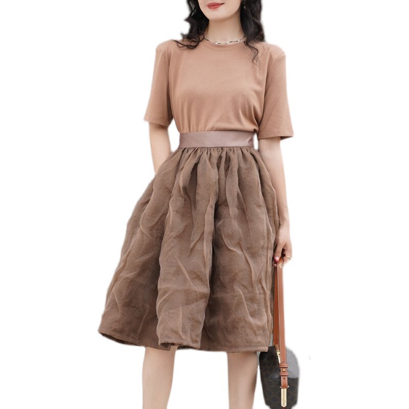 亦克阿瑟定制双层欧根纱提花半身裙复古高腰蓬蓬裙中裙纯色伞裙