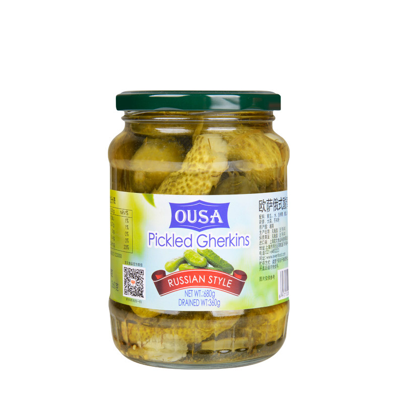 欧萨俄式 进口正宗腌小青瓜罐头俄罗斯酱瓜汉堡配菜 酸黄瓜680g原装