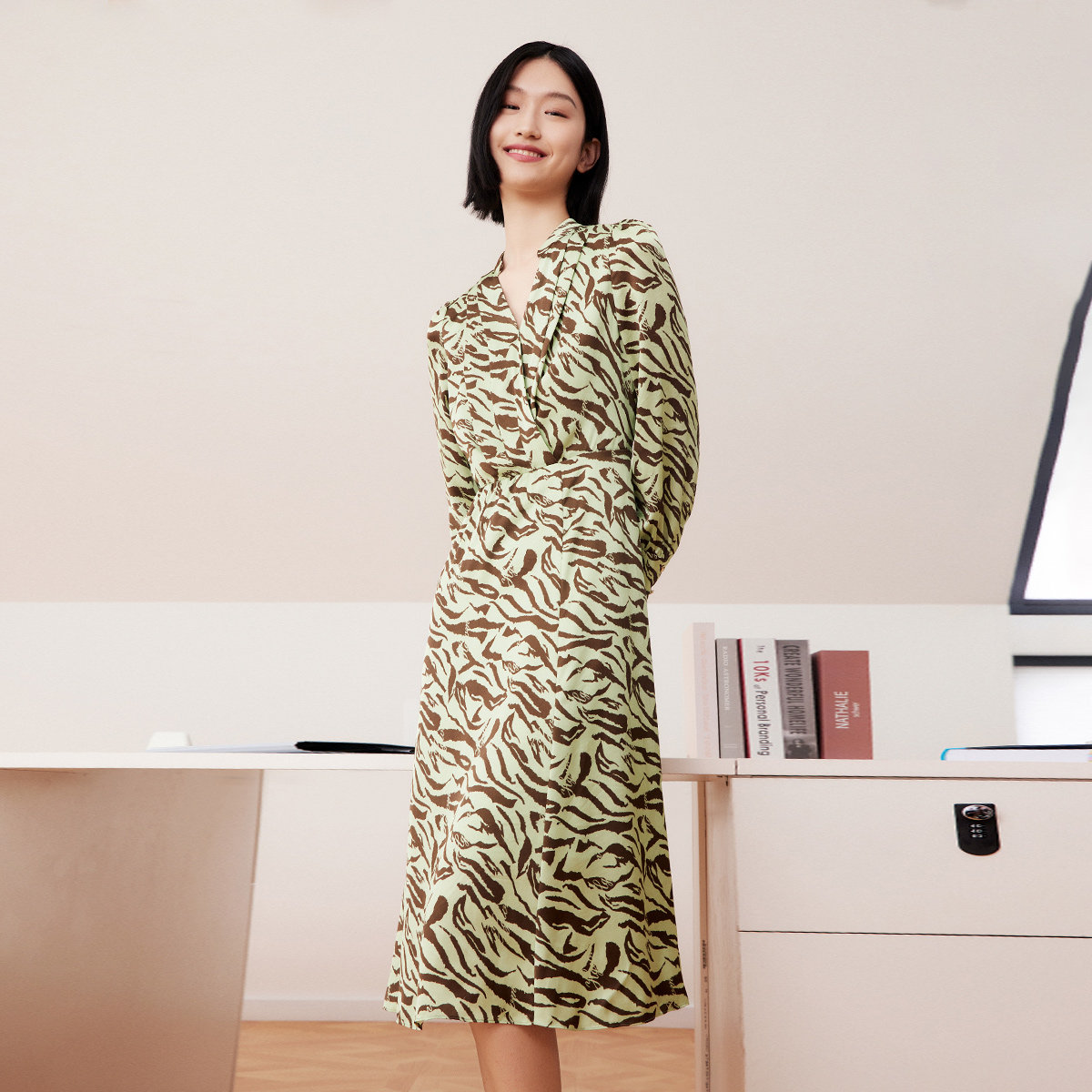 时尚 印花气质V领收腰显瘦连衣裙8D32L3808 专柜新款 歌蒂诗春季