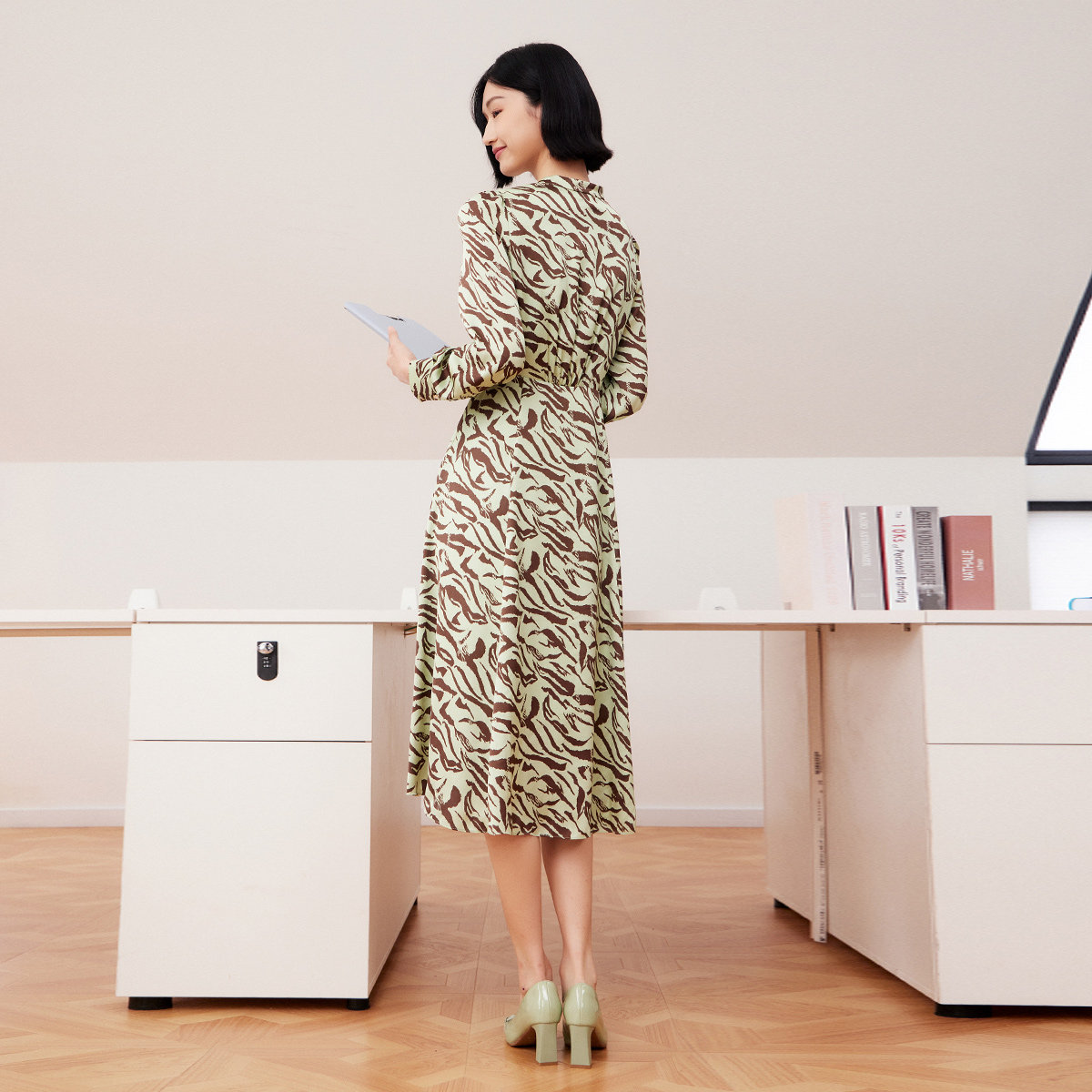 时尚 印花气质V领收腰显瘦连衣裙8D32L3808 专柜新款 歌蒂诗春季由