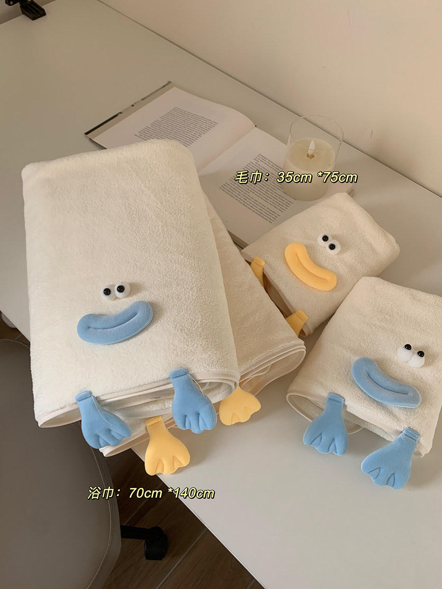 大嘴鸭洗澡毛巾家用大人珊瑚绒吸水速干卡通浴巾女 馨帮帮杂货铺由