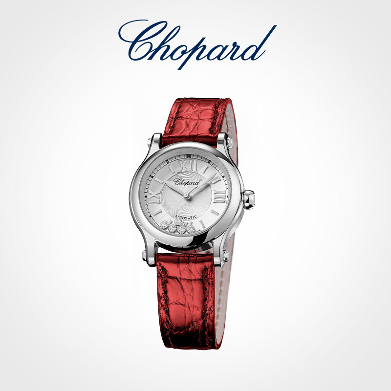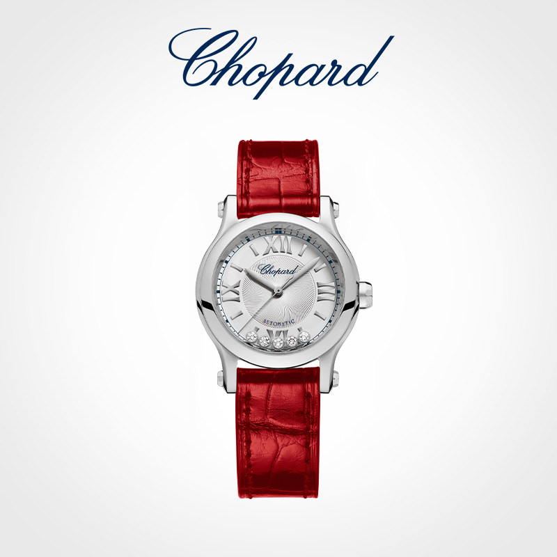 Chopard萧邦快乐钻石精钢红色机械腕表本命年手表生日礼物送女友