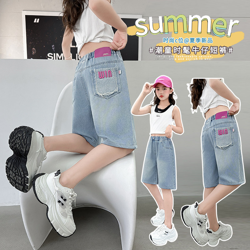 休闲宽松儿童短裤 女童牛仔裤 子 中大童五分裤 外穿女童短裤 夏季 薄款