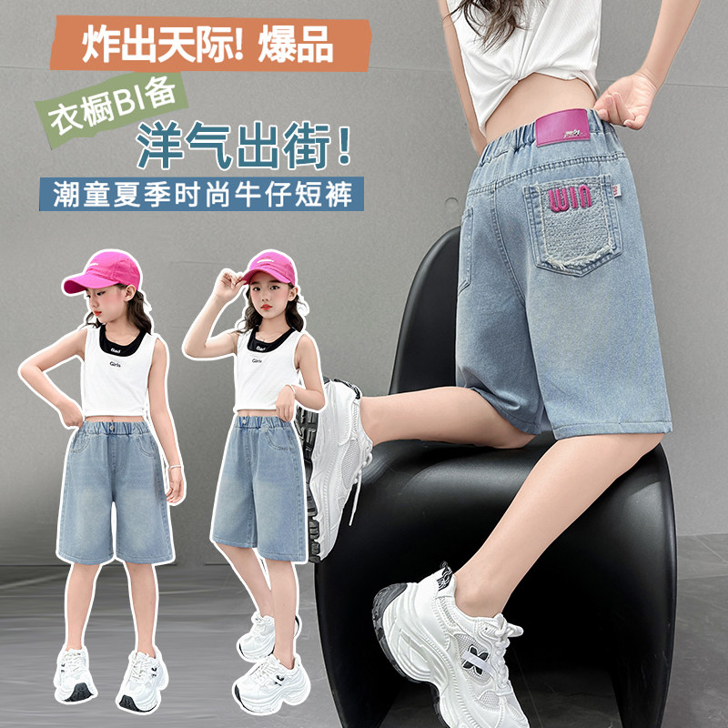 休闲宽松儿童短裤 女童牛仔裤 子 中大童五分裤 外穿女童短裤 夏季 薄款由