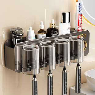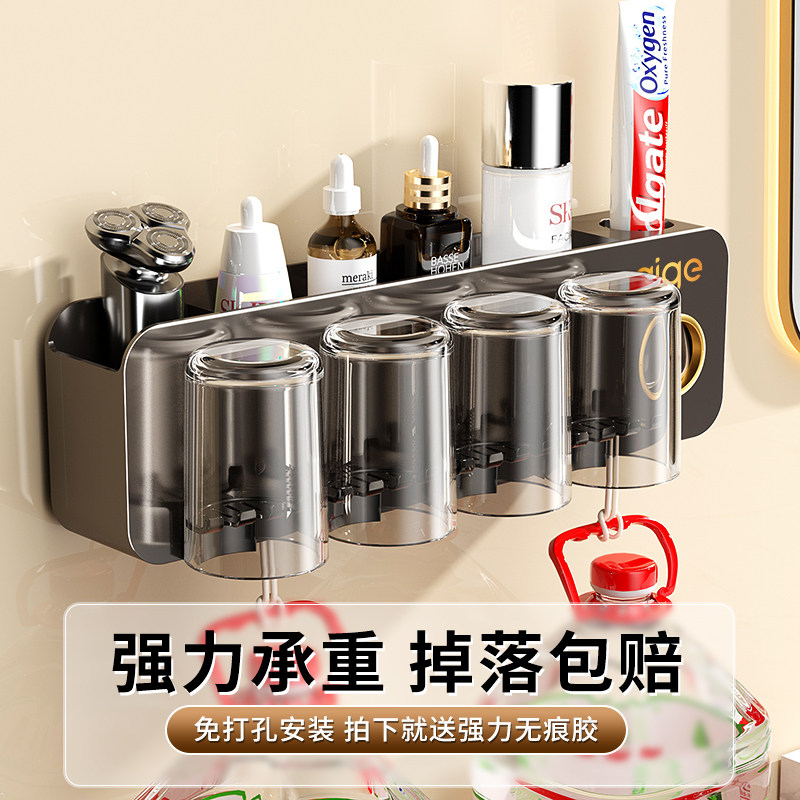 免打孔卫生间漱口杯刷牙杯家庭牙膏架子 日本进口牙刷置物架壁挂式