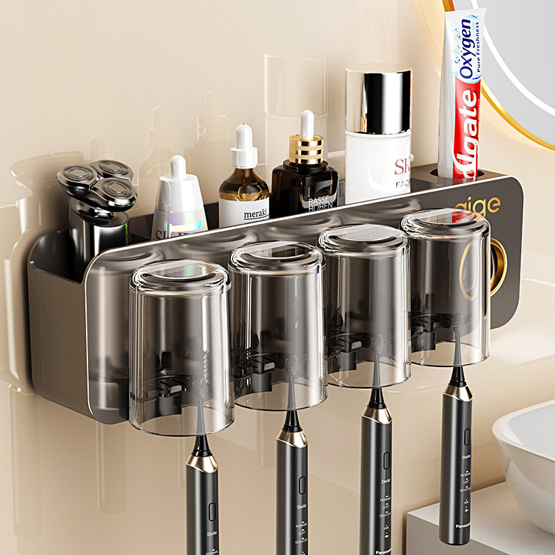 免打孔卫生间牙具座牙膏收纳浴室 牙刷牙杯壁挂置物架电动牙刷套装