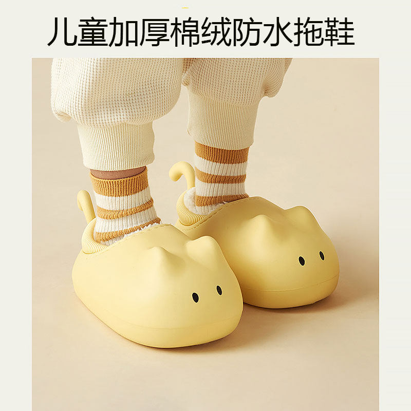 宝宝男童家居防水保暖女童毛拖鞋 女孩冬季 极速猫咪亲子儿童棉拖鞋由