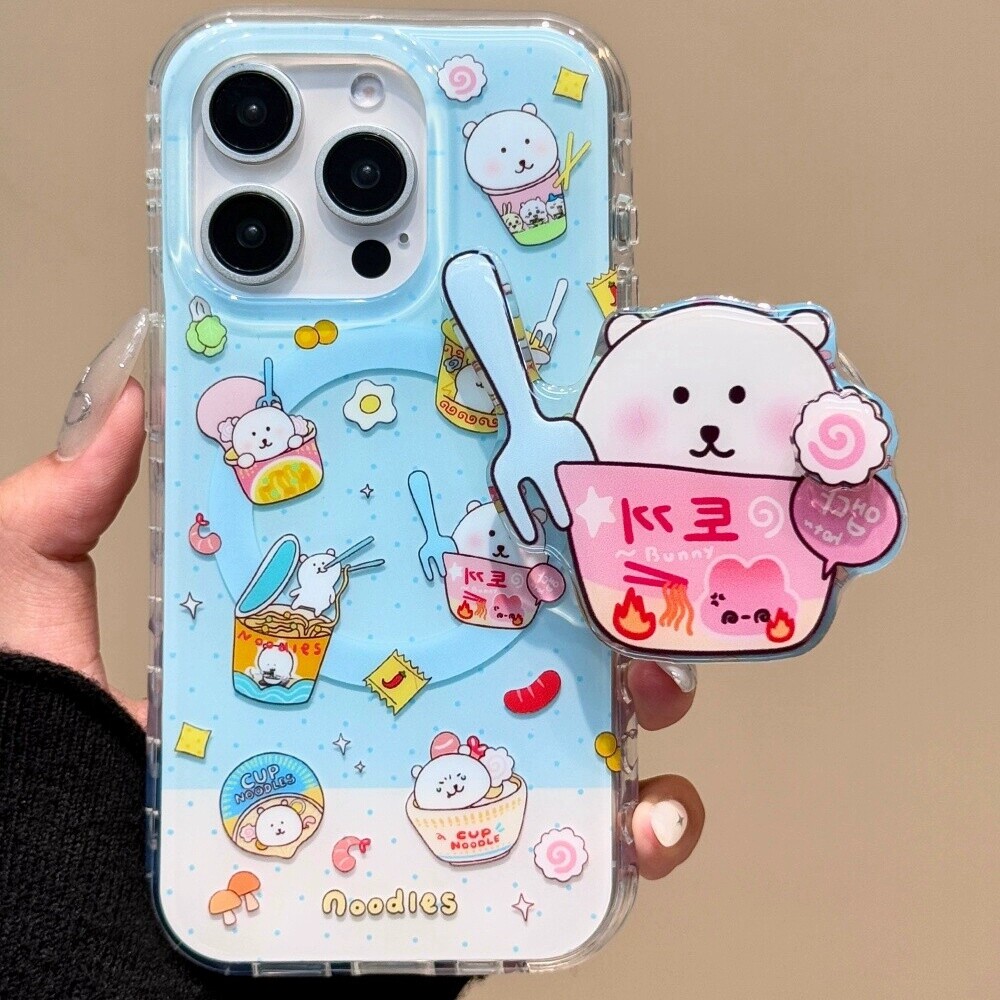 泡面自嘲熊旋转磁吸支架适用A3 11F A57 X7ultra趣味A98 Reno14 A5pro K10 10手机壳findx8 OPPO