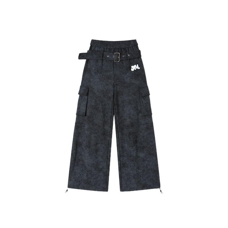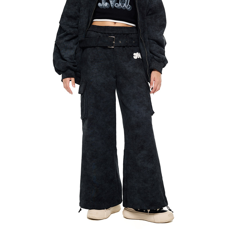 asomesome美式 女灰色修身 休闲松弛运动裤 子 黑色微喇直筒低腰卫裤