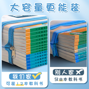 加厚网纱拉链袋文件袋小学生学科目分类双层透明试卷收纳袋a4补习袋书袋一年级男女孩语文数学英语课本作业袋
