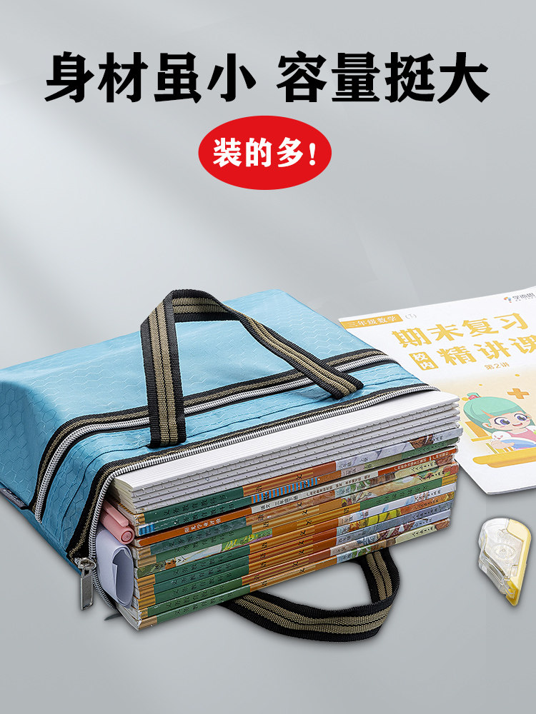 小学生初中生专用手提书袋高中生试卷资料书本作业袋子档案科目分类袋 双层大容量A4透明网纱文件收纳袋拉链式