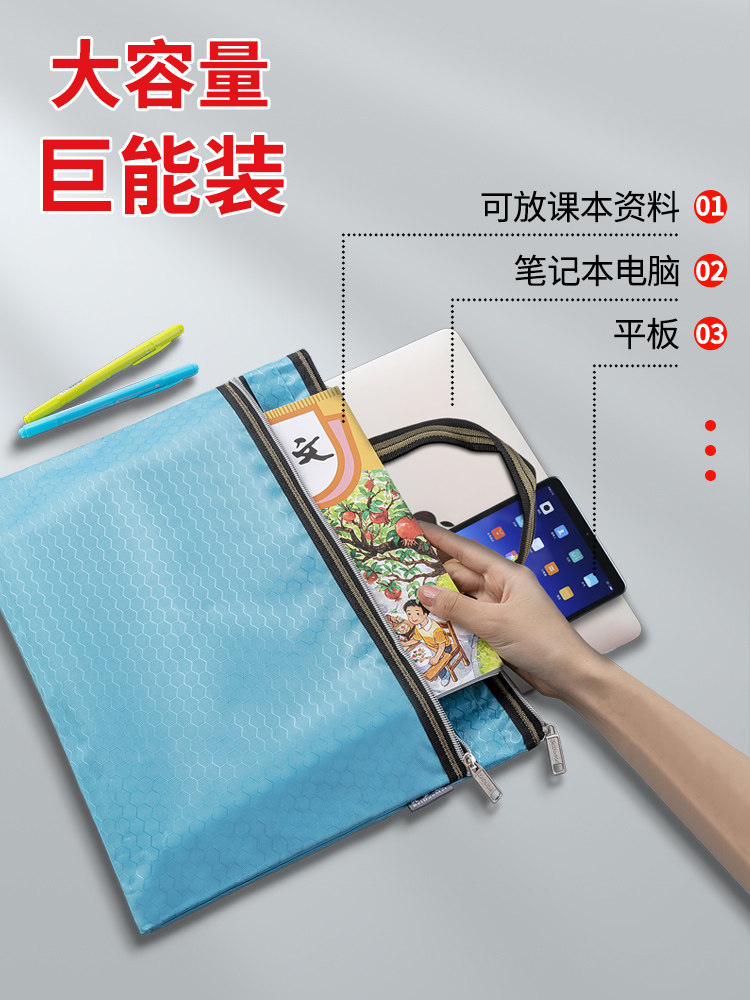 得力文件袋学科袋科目分类袋拉链袋大容量学生双层资料书本学生课本手提拎网纱分科书袋a4试卷收纳袋