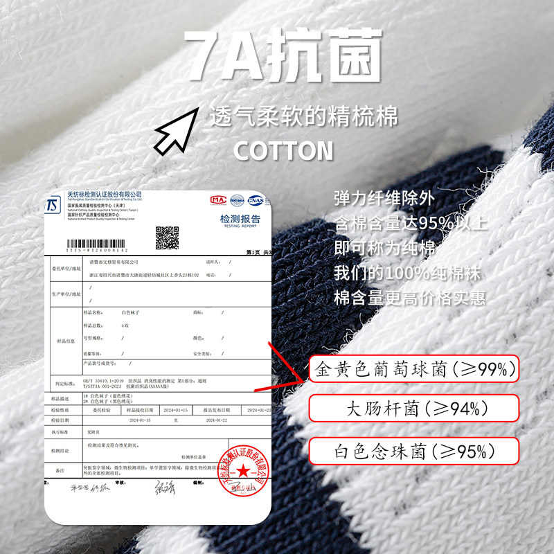 佐印男士 夏薄纯棉纱线中筒7a抗菌男生运动毛巾底白色长袜 袜子男款