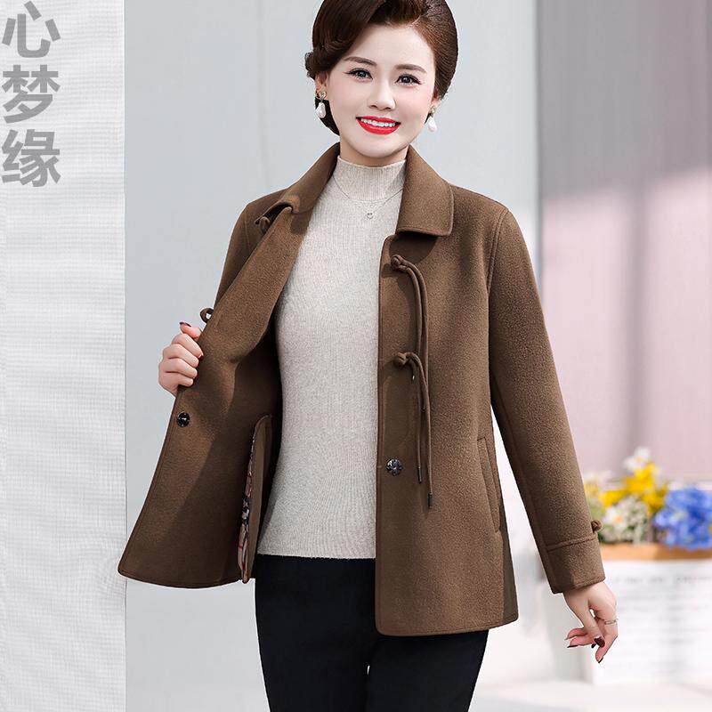 大衣中老年女装 秋冬毛呢上衣 双面呢外套春秋洋气短款 中年妈妈春装