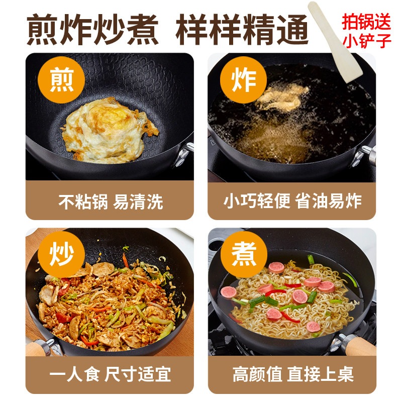 为您提供商品迷你小铁锅家用炒锅电磁炉燃气专用炒菜锅平底锅不粘锅 无涂层的详细介绍,
