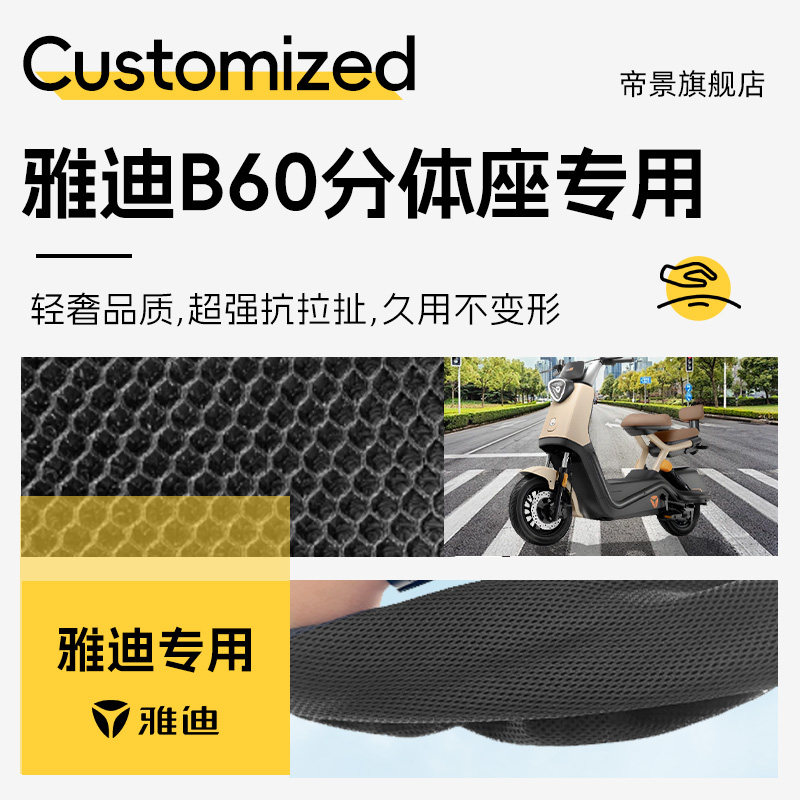 为您提供商品适用于雅迪冠能B60前后座坐垫套电动车六代配件6网洞防晒座套电瓶的详细介绍,