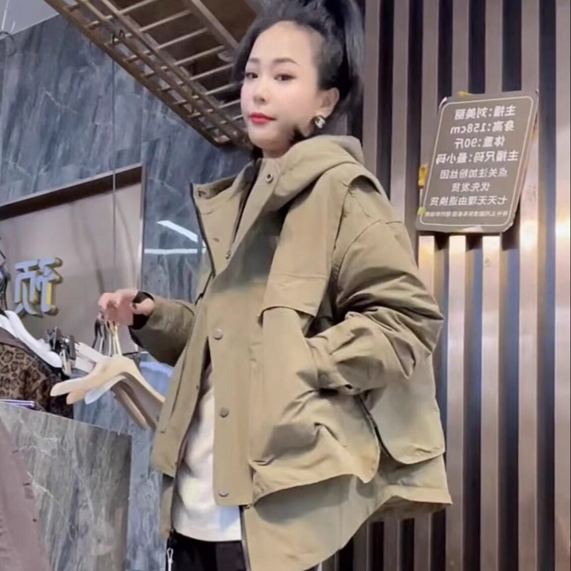 一口苏达张胖胖 黑色外套高级感大码 收腰显瘦短款 风衣 翻领半岛