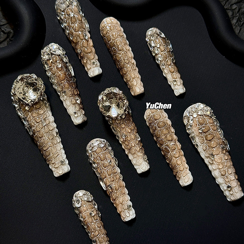 屿辰 亚文化新款 小众重工欧美中长款 手工高级美甲穿戴甲 锆石鳄鱼