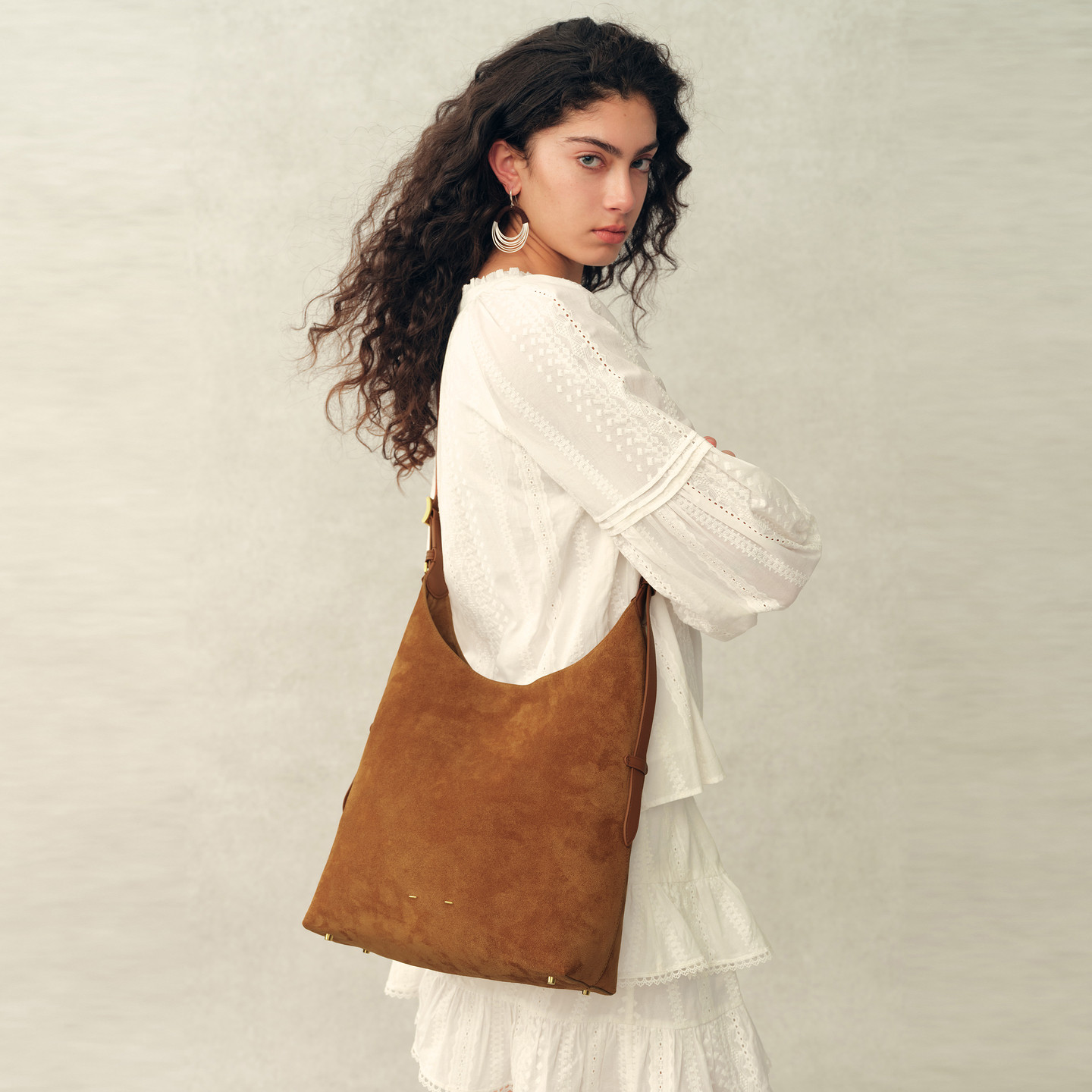 Fabrique绒面牛皮手提斜挎通勤单肩包中号垂耳包女