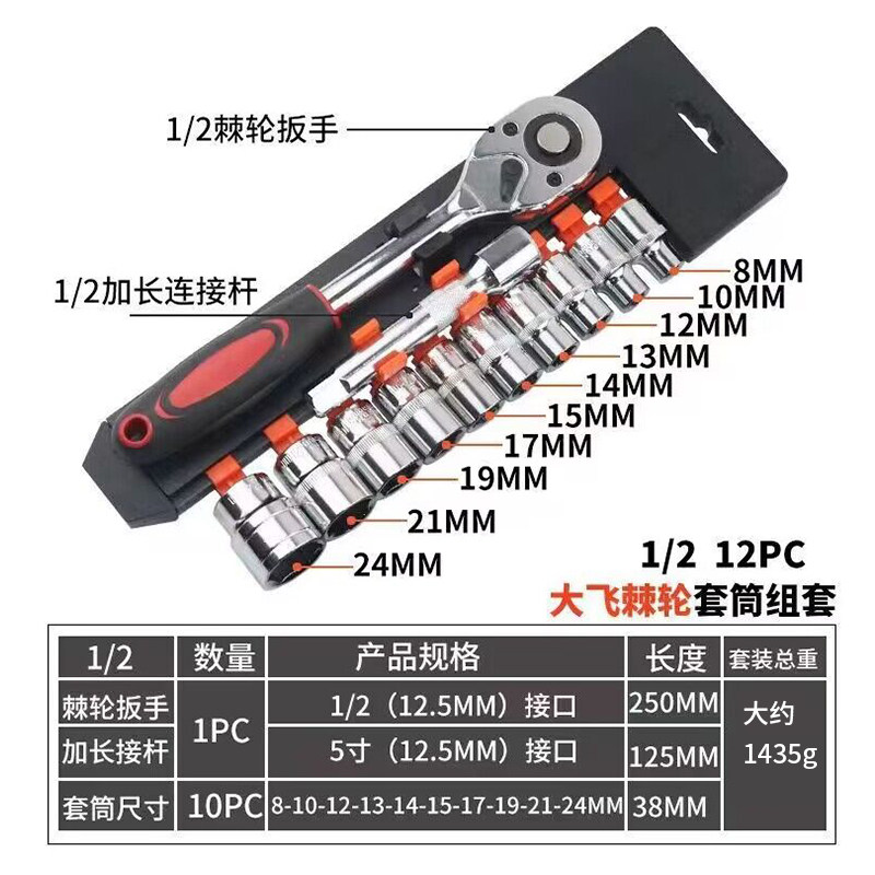 大飞12件套棘轮扳手省力快速维修套筒工具汽车摩托车手动扳手组合由