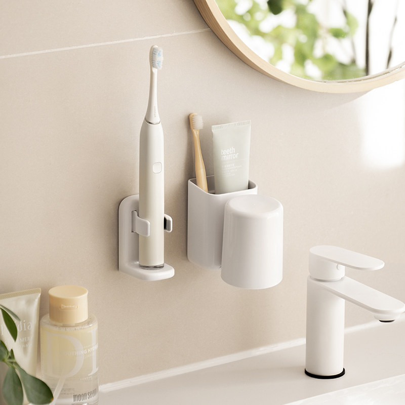 免打孔卫生间牙具座牙膏收纳浴室 牙刷牙杯壁挂置物架电动牙刷套装