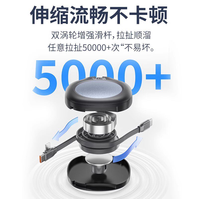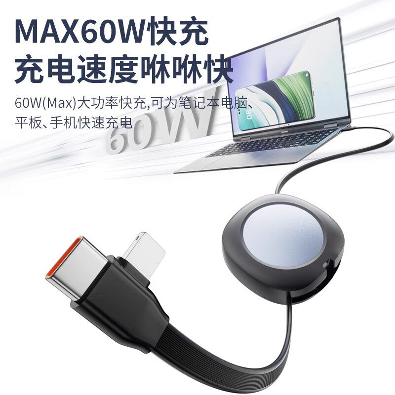 为您提供商品PD60W快充一拖二数据线双头Type 15手机线Lightning C口二合一充电线五档调节收纳PD27W适用于苹果12的详细介绍,