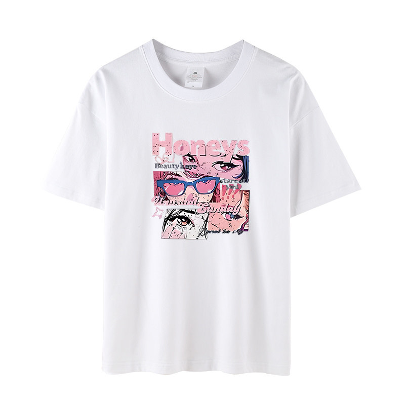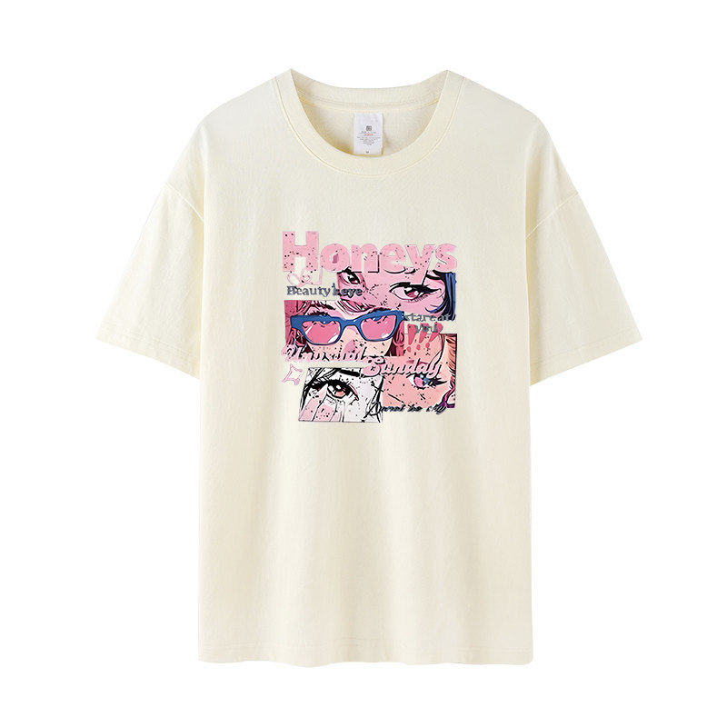 LA短袖 宽松百搭印花上衣白色11 T恤男女情侣落肩袖