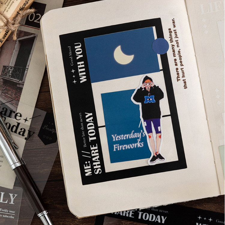 朝雨 饰 ins电影胶片边框pet贴纸手帐机关植物标本diy手工材料装由