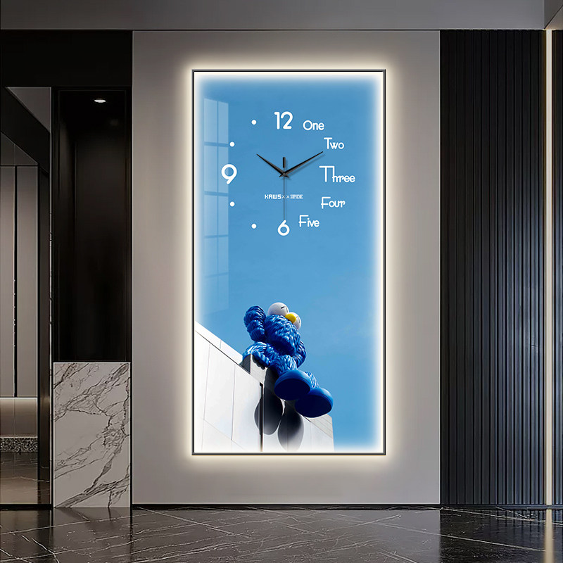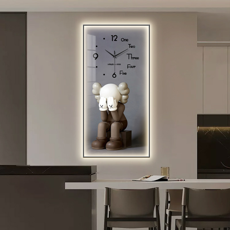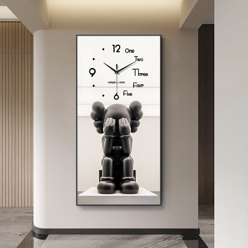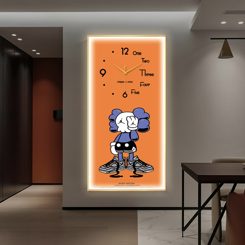 饰画钟表挂钟客厅过道走廊挂画发光灯画暴力熊艺术时钟 kaws玄关装由