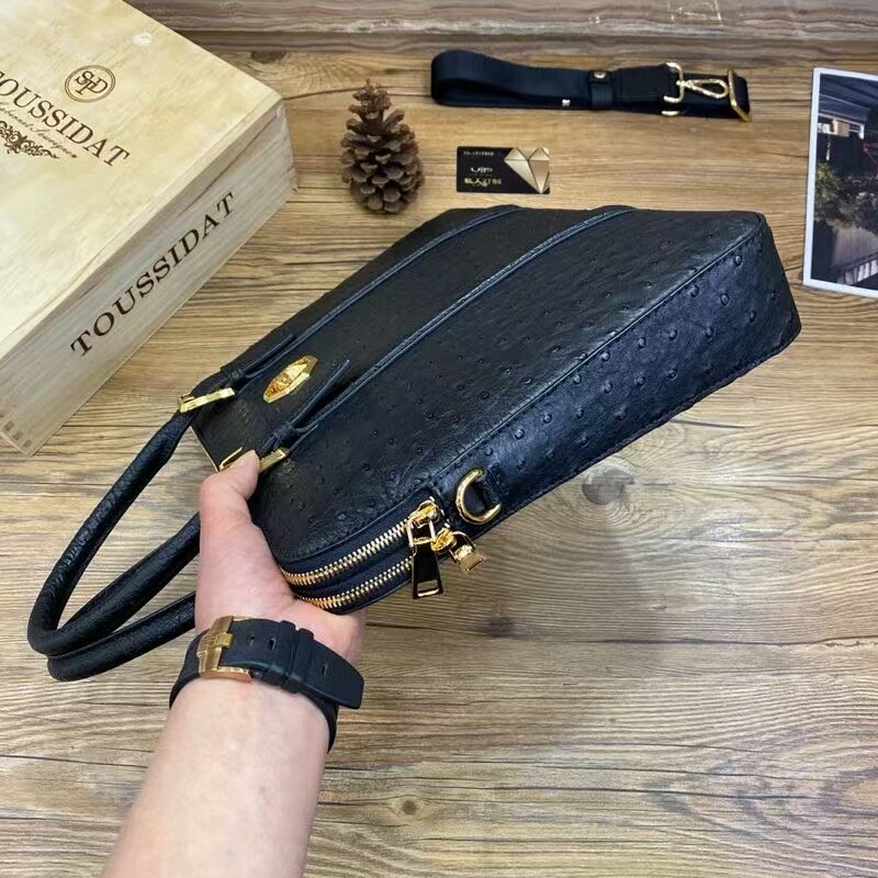 商务休闲手提包A4文件包袋时尚 公文电脑包横 鸵鸟皮男士 奢侈品正品
