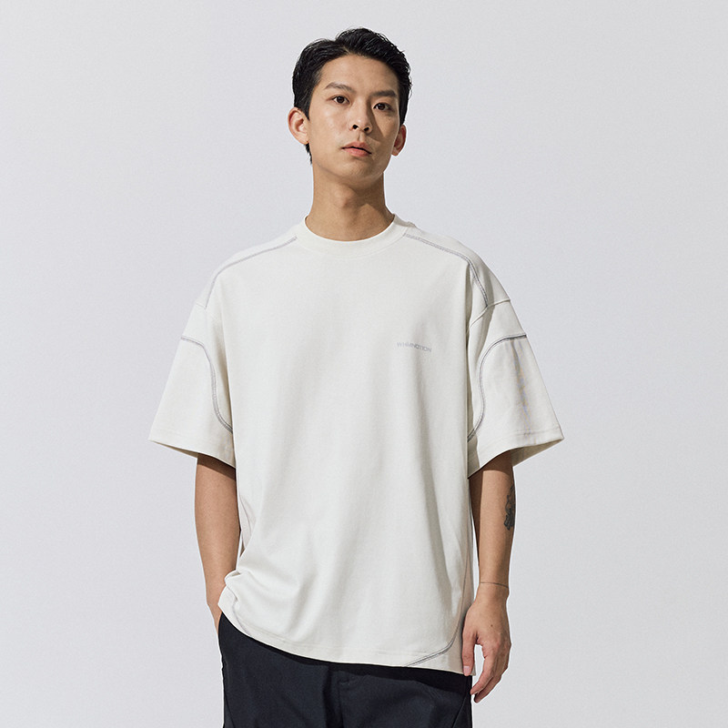 WHIMNOTION T恤凉感速干抗菌上衣男 25SS正反面结构哈苏线拼接短袖