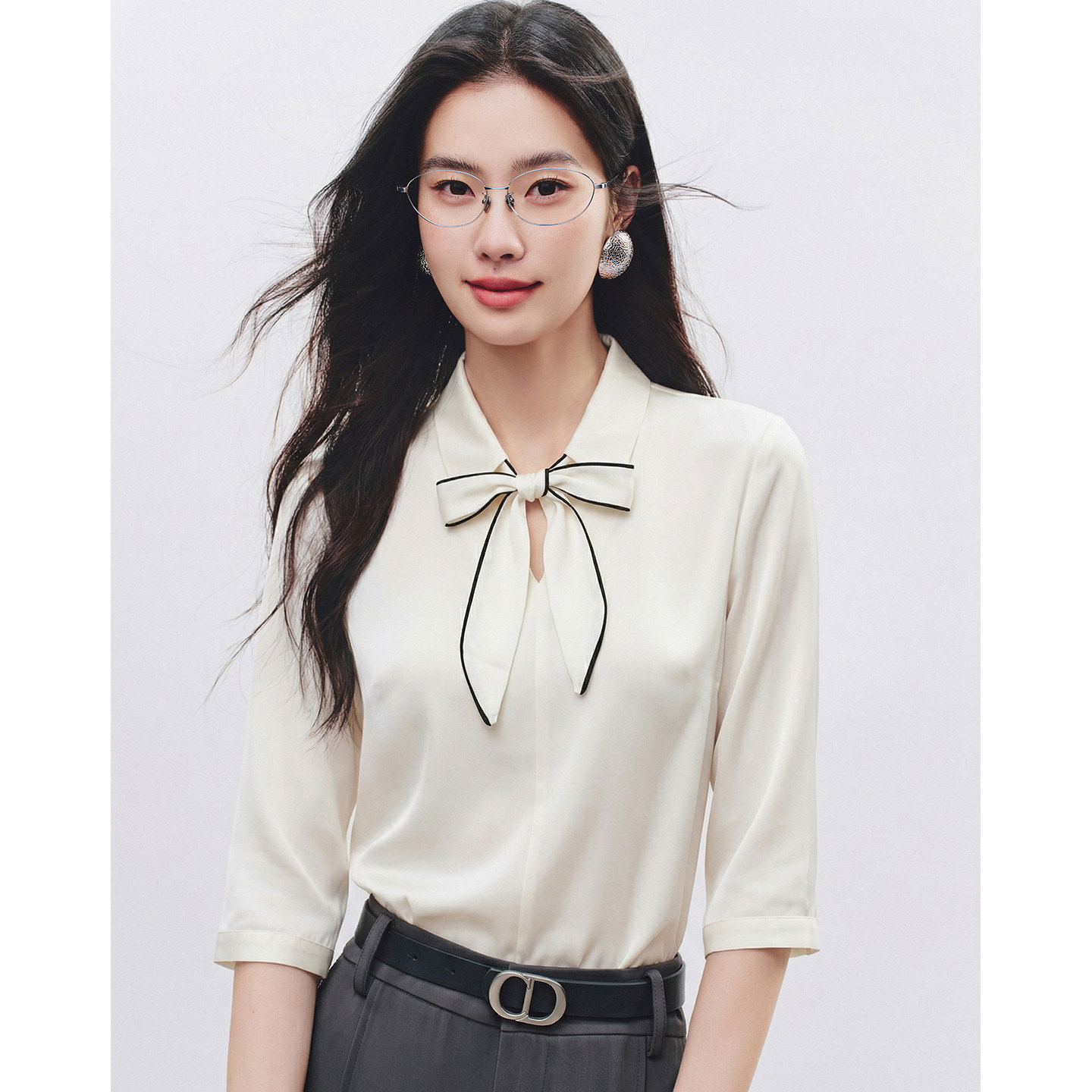 为您提供商品新款 宽松爽滑垂感轻奢减龄上衣 女2026年夏装 衣香丽影白色飘带衬衫的详细介绍,