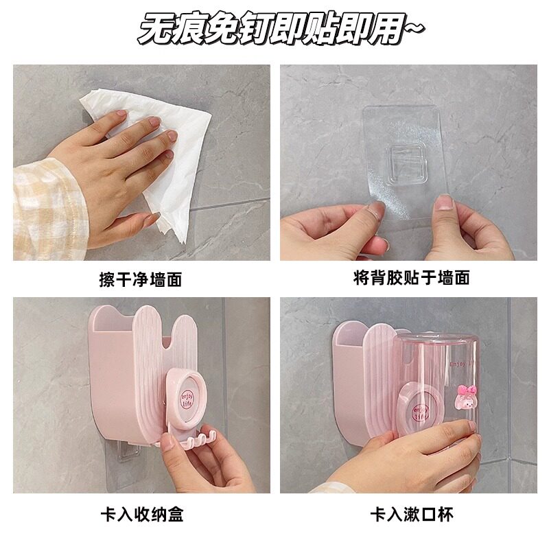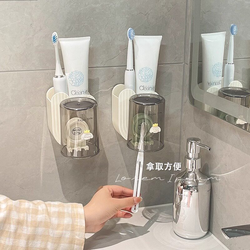 免打孔卫生间牙具座牙膏收纳浴室 牙刷牙杯壁挂置物架电动牙刷套装