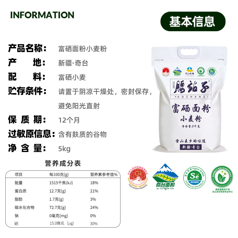 为您提供商品新疆奇台腰站子富硒面粉5kg包子饺子欧包吐司通用中强筋小麦粉的详细介绍,