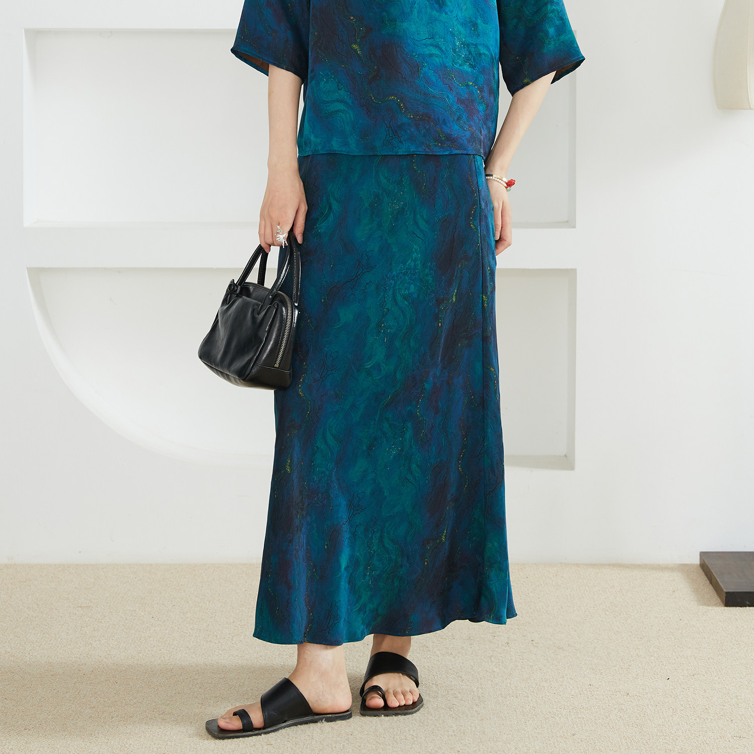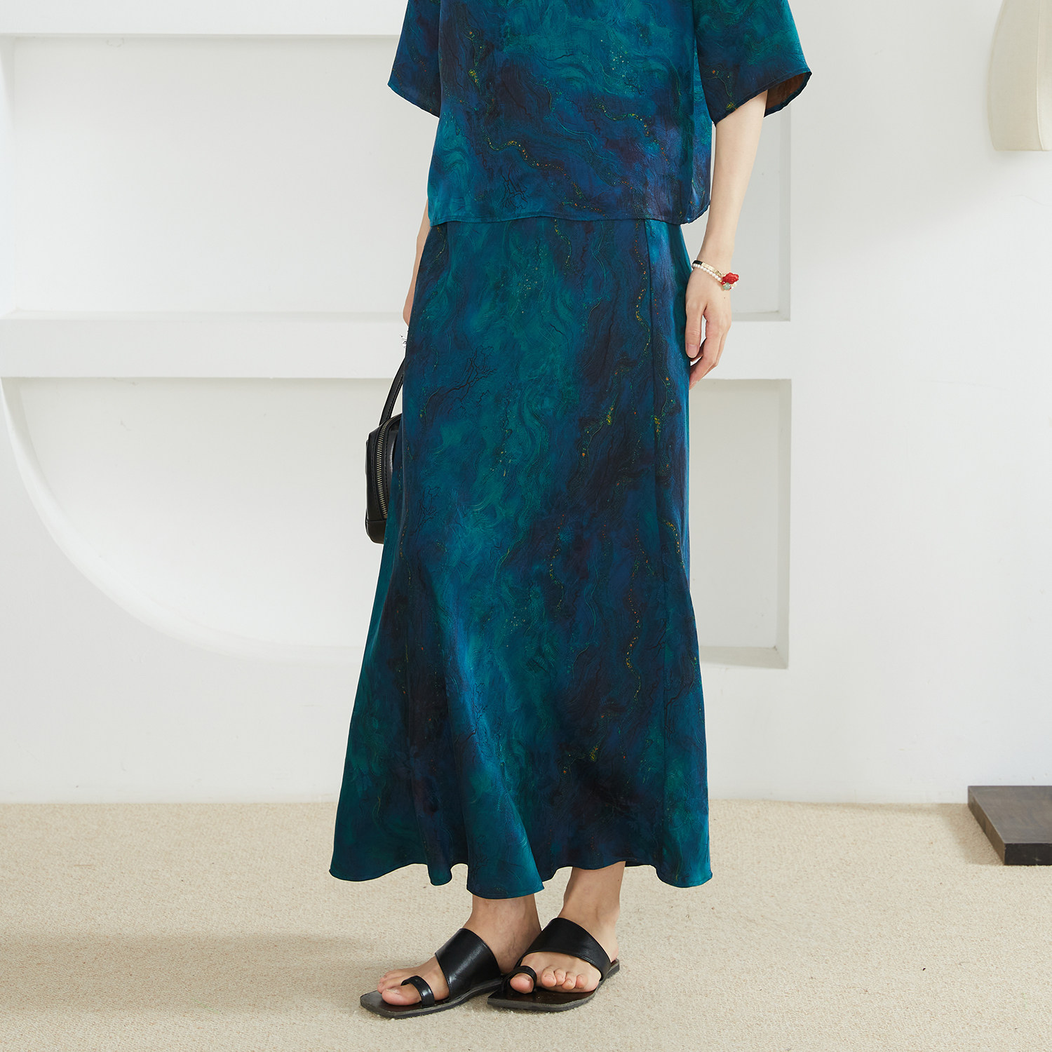 进口醋酸缎面丝滑垂坠显瘦松紧腰A字中长款 半身裙 memory commuse