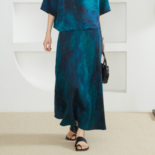 真丝花罗半身裙香云纱鱼尾裙女100%桑蚕丝深海蓝显瘦礼服 一丝牵