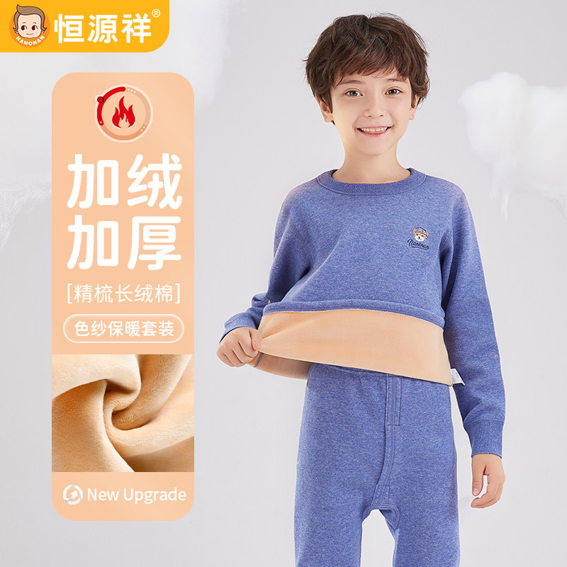 为您提供商品大童青少年冬季 加厚加绒儿童秋衣秋裤 恒源祥无骨男童保暖内衣套装的详细介绍,
